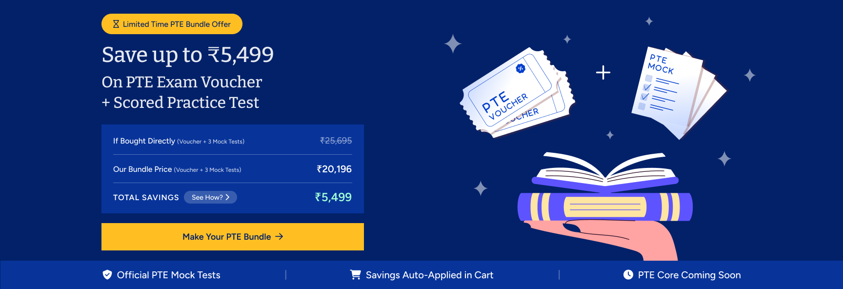 - Discounted official exam vouchers (PTE, GRE, TOEFL, Duolingo)